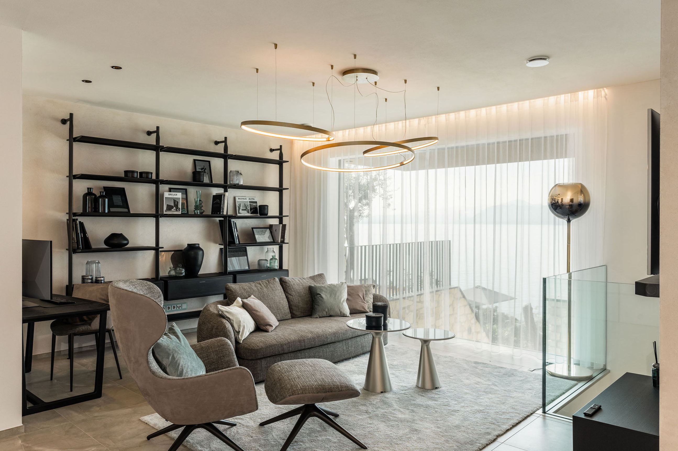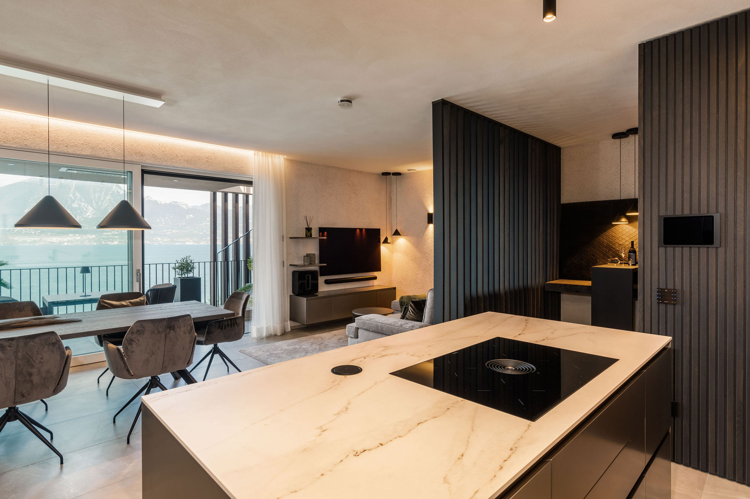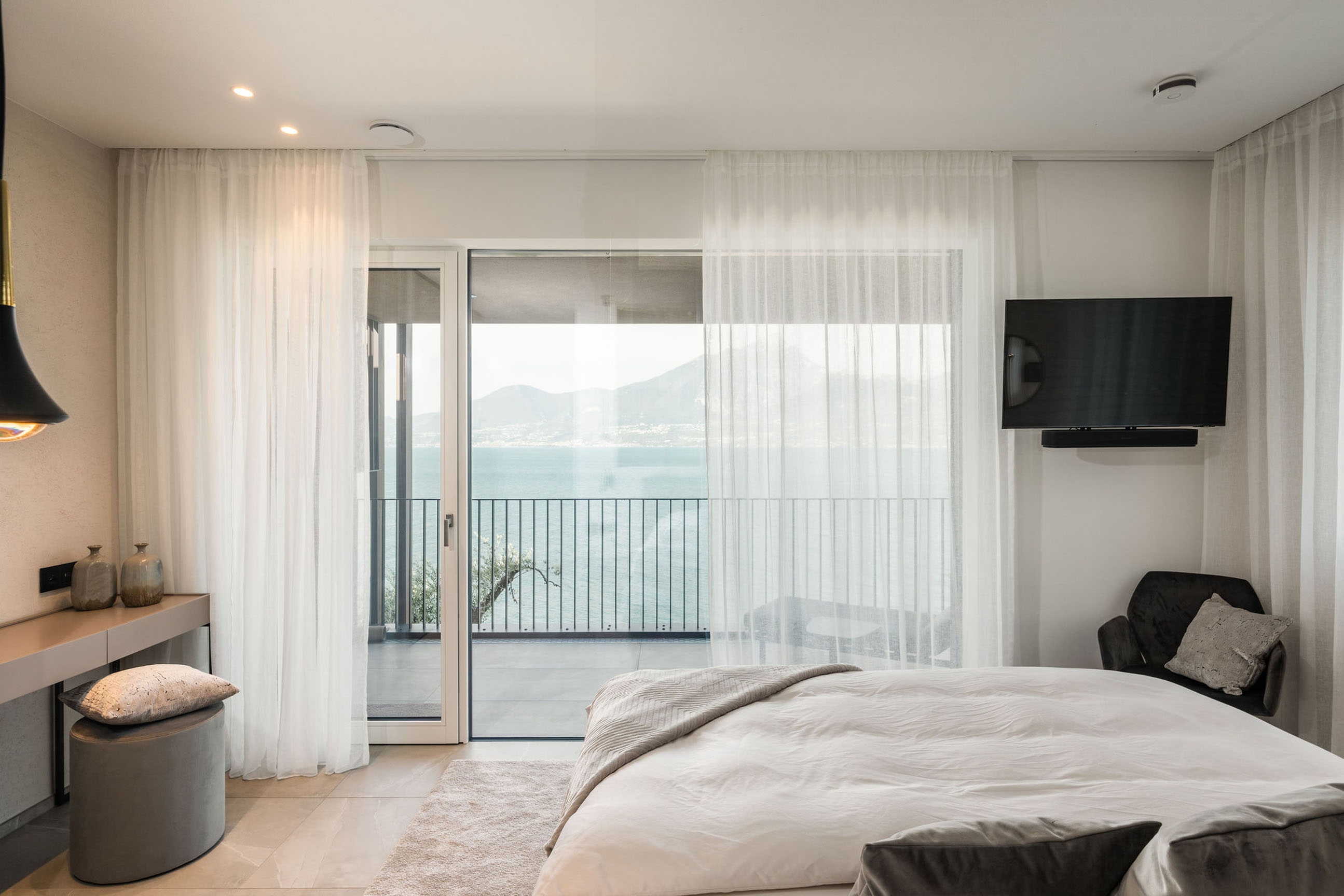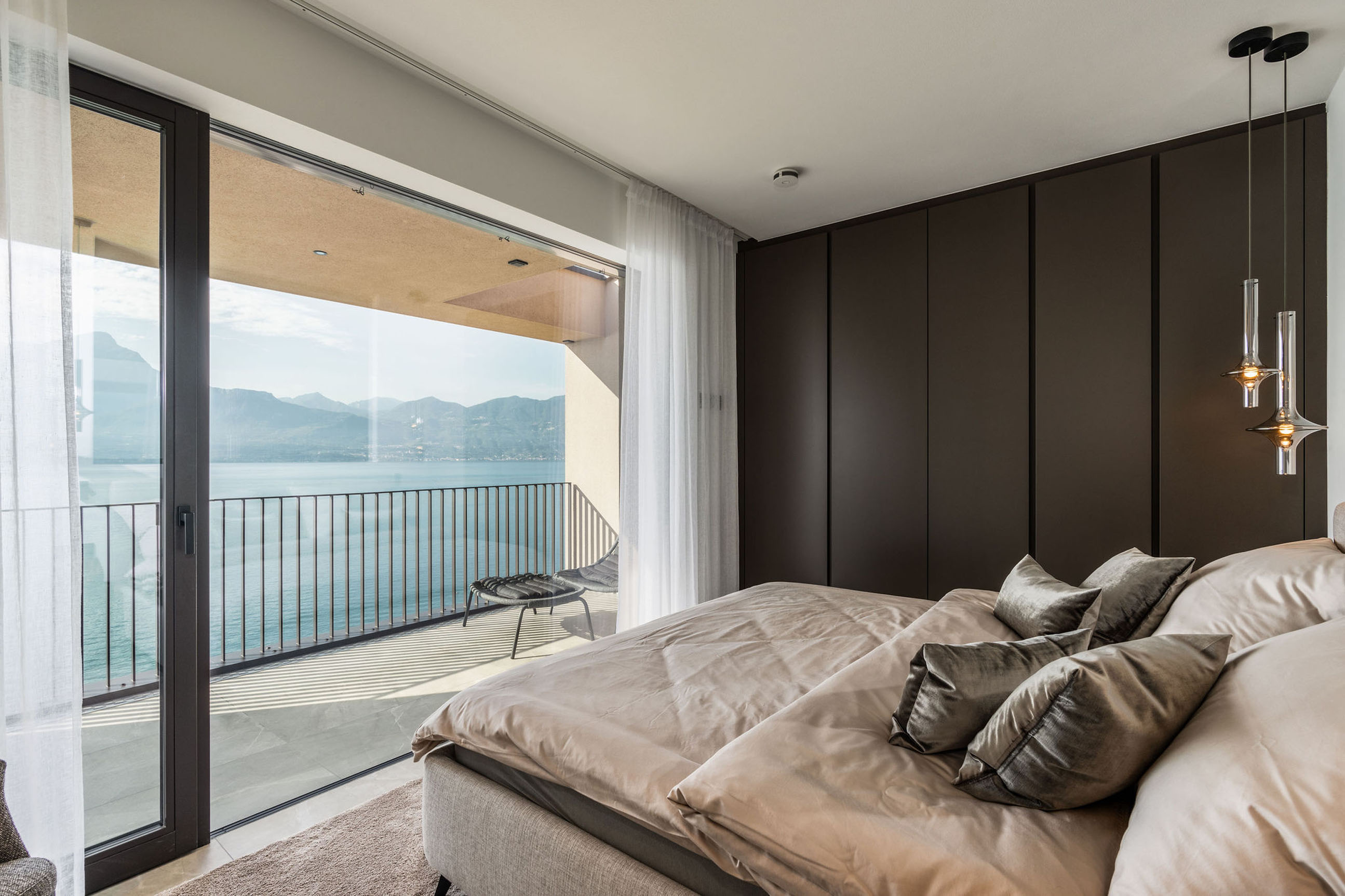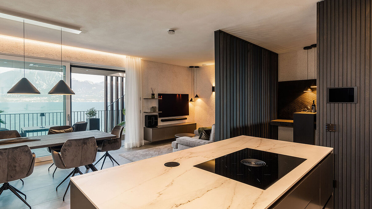 Entlang des Sees, etwas oberhalb von Torri del Benaco, am Hang der Gardesana, erstrecken sich drei elegante Baukörper bestehend aus sechs Einheiten. Der atemberaubende Ausblick auf das Hafenstädtchen und die Weiten des Sees machen den Aufenthalt zu einem Erlebnis der besonderen Art.